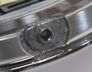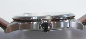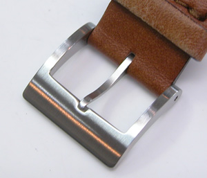 ステンレス無垢尾錠で、裏蓋の裏側もチェックします。