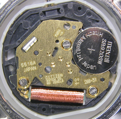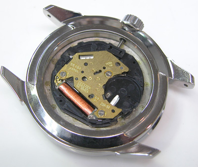 綺麗になったケースにムーブメントを戻して電池格納部をチェックします。