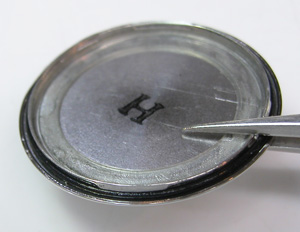 パッキンにシリコン塗布をして裏蓋に戻します。そしてガラスを取付。