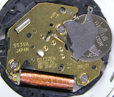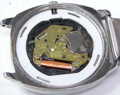 綺麗になったケースにムーブメントを戻して電池格納部をチェックします。