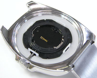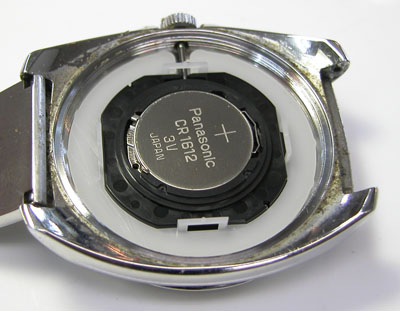 綺麗になったケースにムーブメントを戻して電池格納部をチェックします。