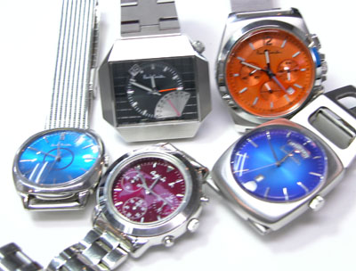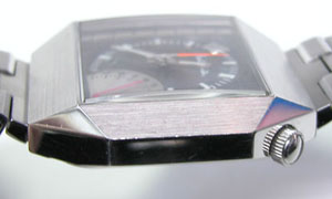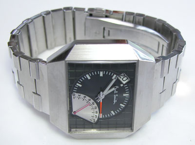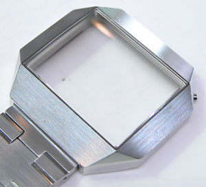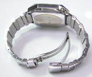 ステンレス無垢バンドに三つ折れプッシュバックル。