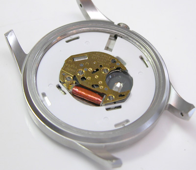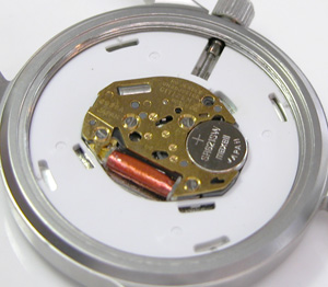 綺麗になったケースにムーブメントをもどして電池格納部をチェックします。
