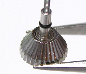 竜頭パイプもチェックして。これが取り出した文字盤&ムーブメント。