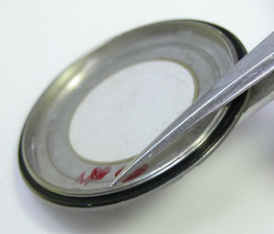 パッキンにシリコン塗布をして裏蓋に戻し。電池交換のみでは全文字表示で不安定。