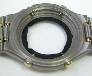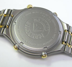 裏蓋はスクリューバックで右が裏蓋記載。