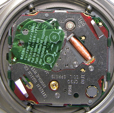 綺麗になったケースにムーブメントを戻して電池格納部をチェックします。
