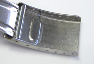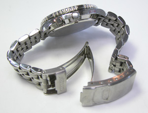 ステンレス半無垢バンドに三つ折れダブルロック。