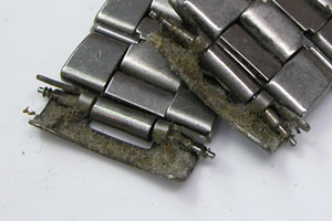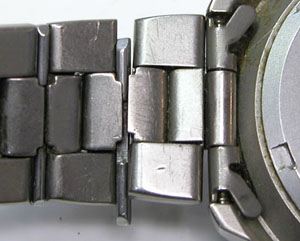 ベルト調整出来ない部分でピンが抜けるとという事ですが、ここは修理は不可。メーカーならベルト交換しか対応出来ないでしょう。原因はチタンの板を巻いてかしめてあるのみですが素材が堅いだけに簡単ではありません。