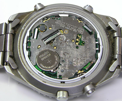 綺麗になったケースにムーブメントを戻して電池格納部をチェックします。