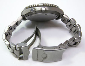 チタン無垢バンドに三つ折れダブルロック。