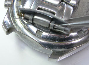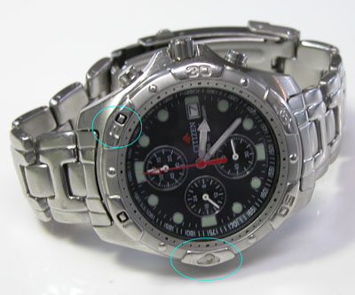 バンドを外してラグ部のチェック。裏蓋はスクリューバックで。