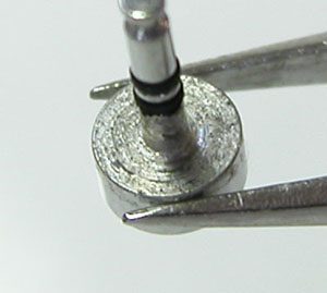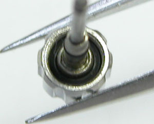 先ずは洗浄ですが目盛がガラスの裏面にある腕時計はそのまま洗浄できません、そこで竜頭を取付て裏蓋を閉めて洗浄します。