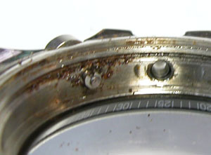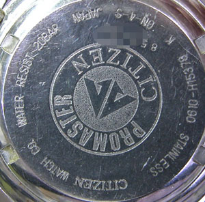 裏蓋記載。裏蓋の裏側もチェックしますとパッキンが劣化していますね・・。