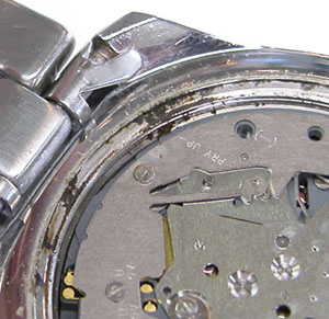 綺麗になったケースにムーブメントを戻して電池格納部をチェックします。
