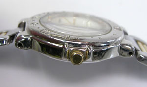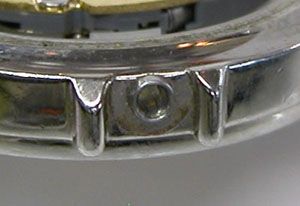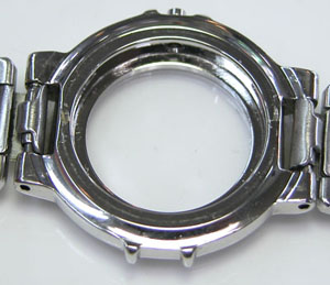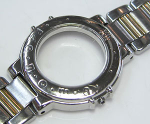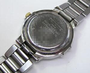 裏蓋は”はめ込みタイプ”で右が裏蓋記載。裏蓋の裏側もチェックしますがパッキンが切れています。