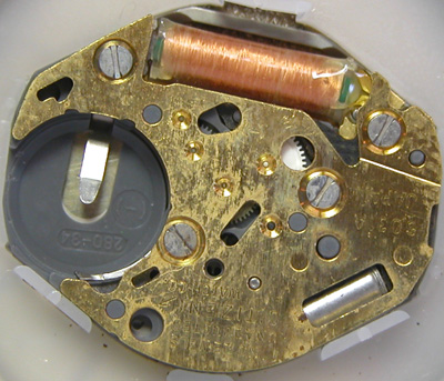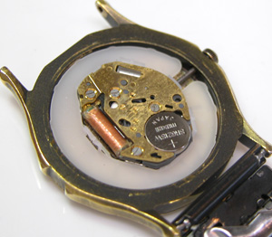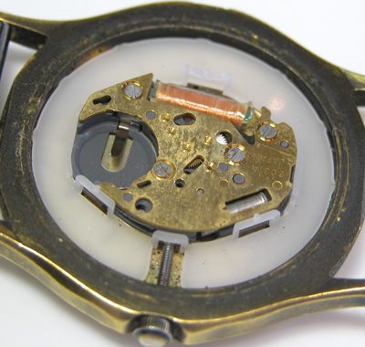 綺麗になったケースにムーブメントをもどして電池格納部をチェックします。