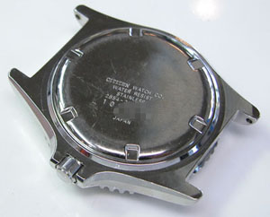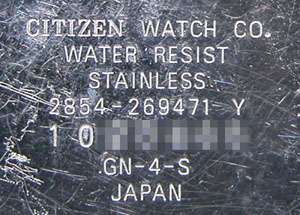 裏蓋はスクリューバックで右が裏蓋記載。
