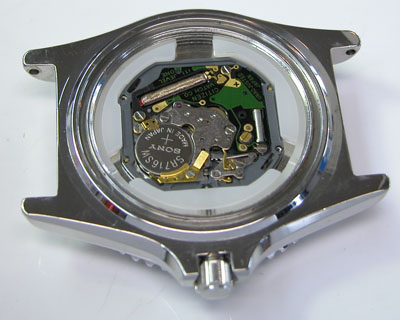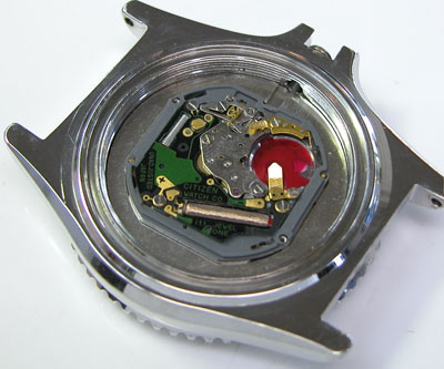 綺麗になったケースにムーブメントを戻して電池格納部をチェックします。