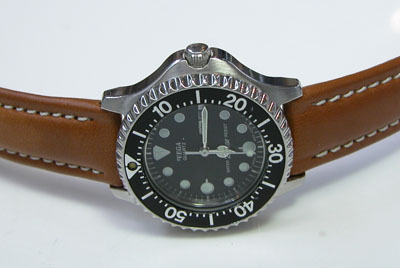 回転ベゼルに、ねじ込み竜頭はダイバー仕様ですが「VEGA」ですから本格的に潜ってはいけません。
