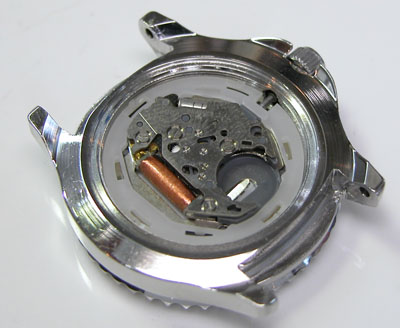綺麗になったケースにムーブメントを戻して電池格納部をチェックします。