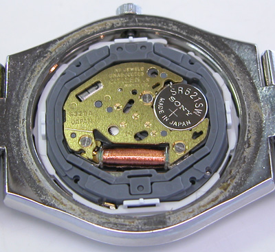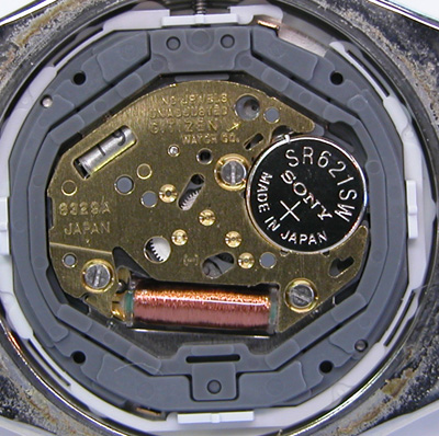 綺麗になったケースにムーブメントを戻して電池格納部をチェックします。