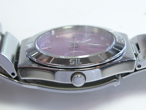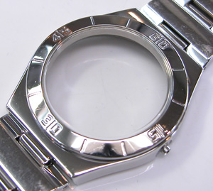 ステンレス無垢バンドに三つ折れプッシュバックル。
