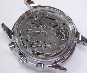 これが取り出した文字盤&ムーブメント。ケースの洗浄は終わってツヤが出ましたね。