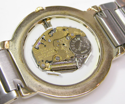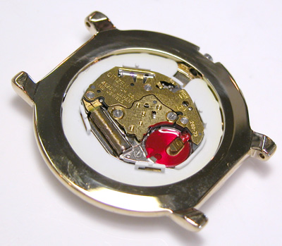 綺麗になったケースにムーブメントをもどして電池格納部をチェックします。