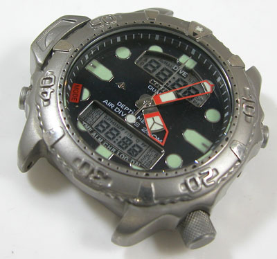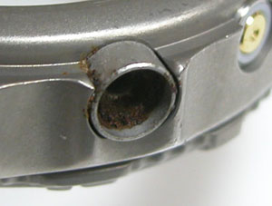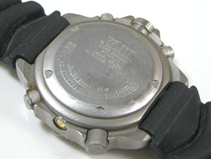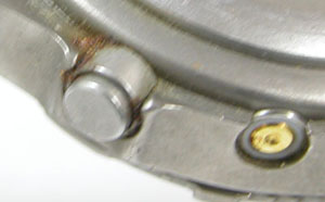 裏蓋はスクリューバックで、プッシュボタンのサビが気になります。プッシュしても不動ですが洗浄で動くようになるか?