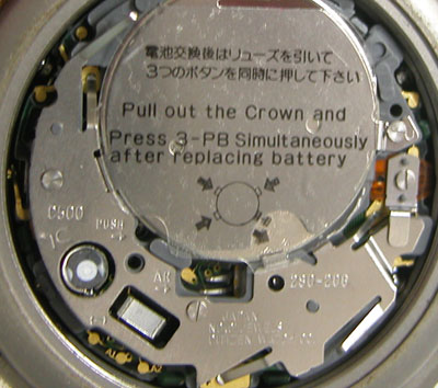 綺麗になったケースにムーブメントを戻して電池格納部をチェックします。