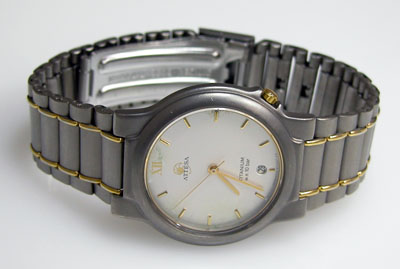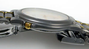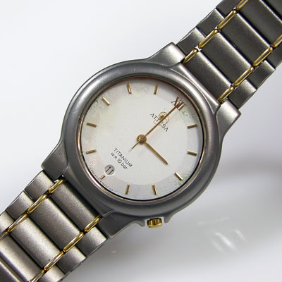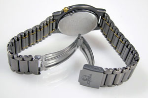 チタン板巻バンドに三つ折れバックル。時計全体にシリコングリスが塗ってありツルツルで滑ります。なぜこんな事になったのか?