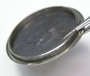 裏蓋は”はめ込みタイプ”で右が裏蓋記載。裏蓋の裏側もチェックします。