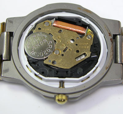 綺麗になったケースにムーブメントを戻して電池格納部をチェックします。