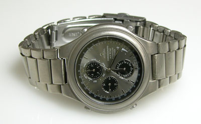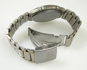 チタン板巻きバンドにプッシュバックル。