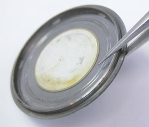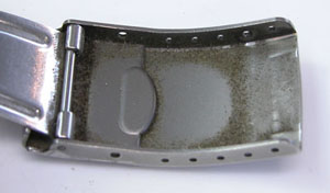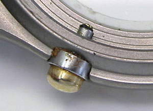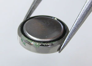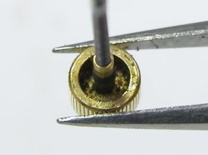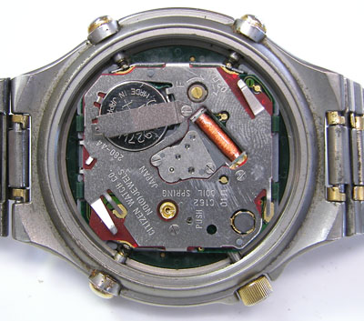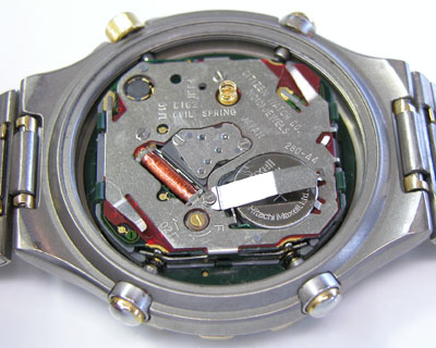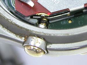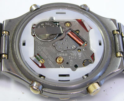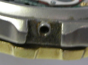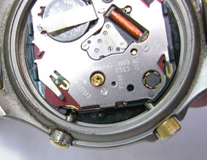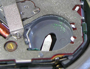 綺麗になったケースにムーブメントを戻して電池格納部をチェックしますが・・・おや?