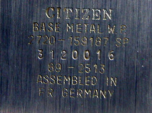 2013年3月29日お預かりのCITIZEN 2720-159187 SP電池交換メンテナンスです。
