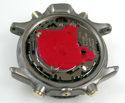 綺麗になったケースにムーブメントを戻して電池格納部をチェックします。
