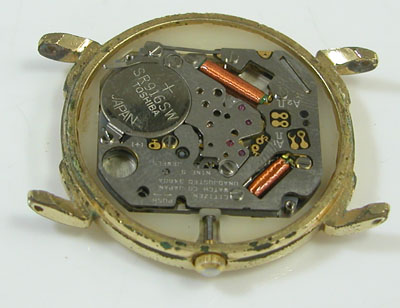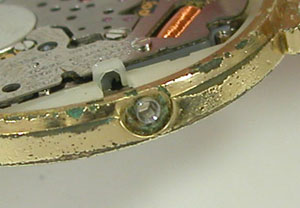 綺麗になったケースにムーブメントを戻して電池格納部をチェックします。