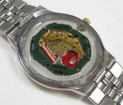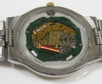 綺麗になったケースにムーブメントを戻して電池格納部をチェックします。