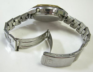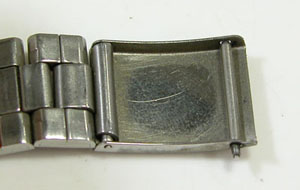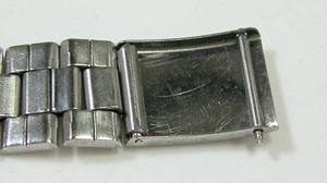 ステンレス板巻きバンドに三つ折れバックル。