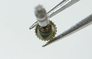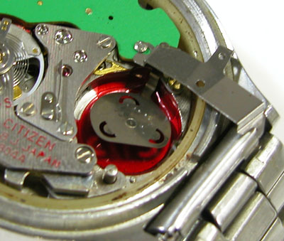 綺麗になったケースにムーブメントを戻して電池格納部をチェックします。