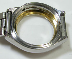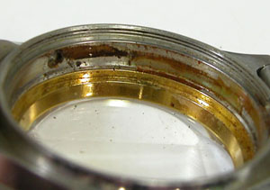 ケースの内側もチェックしますがサビが。この程度は洗浄で綺麗になるでしょう。