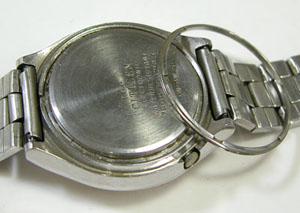 裏蓋はスクリューバックで右が裏蓋記載。