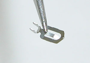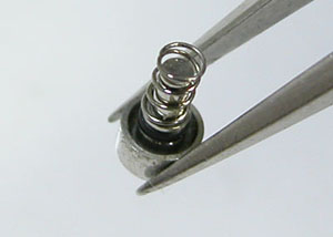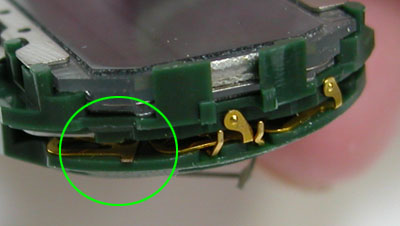 ここへ差し込みます。ピンセットで触れば表示が変わりますのでOKのよう。あとはプッシュボタンに上手く当たる様に調整して。