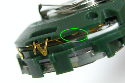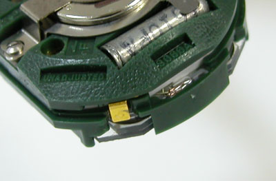 ガラ箱からデジタルムーブのマイナス端子を探し出します。これを変形させて。