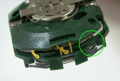 プッシュボタンが当たるムーブメント側のレバーが折れて無い。