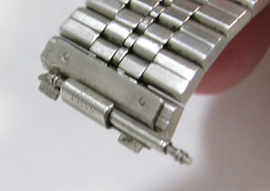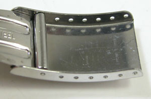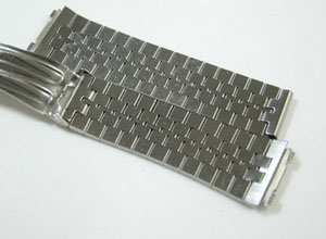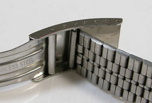 ステンレス板巻きバンドに三つ折れバックル。