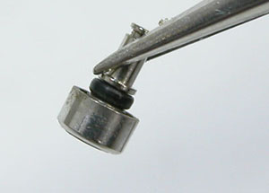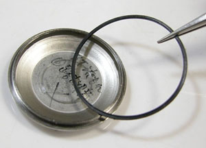 プッシュボタンには問題無いようです。パッキンは交換してシリコン塗布をして裏蓋に戻し裏蓋を閉め簡易防水テストがてらの洗浄。