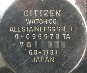 裏蓋はスクリューバックで右が裏蓋記載。